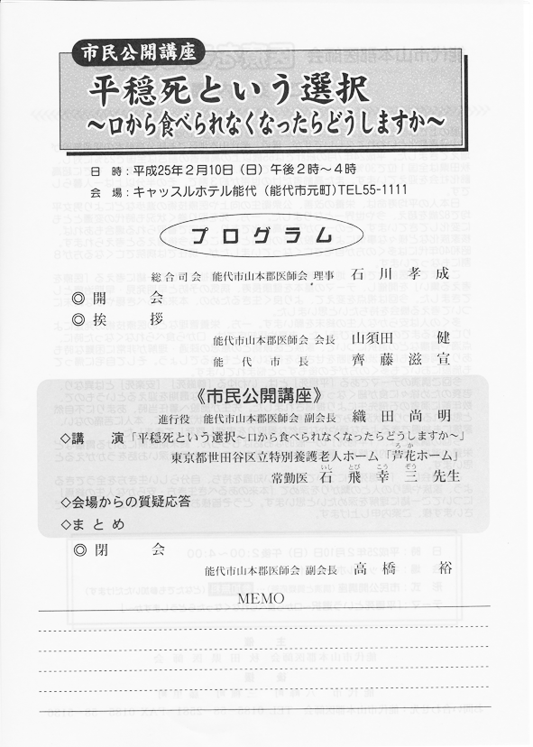 演者:世田谷区立芦花ホーム 医師 石飛幸三先生