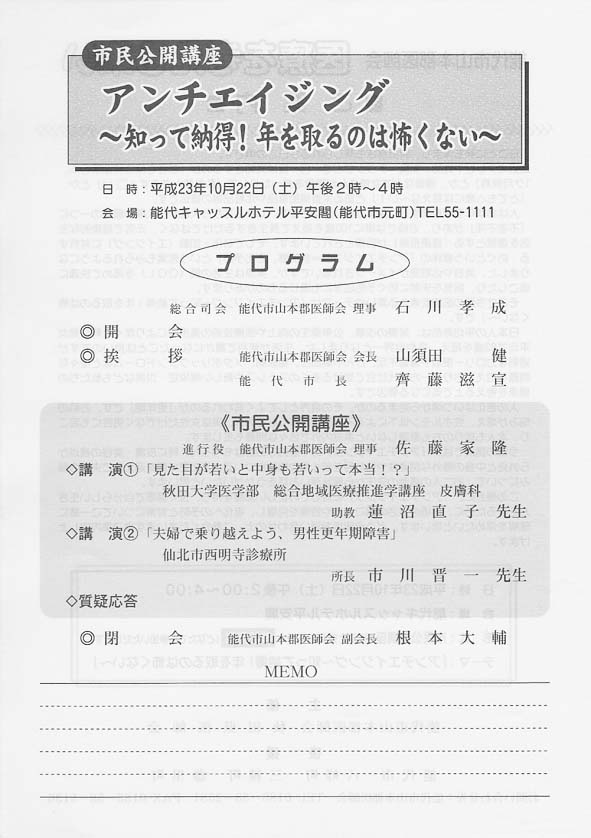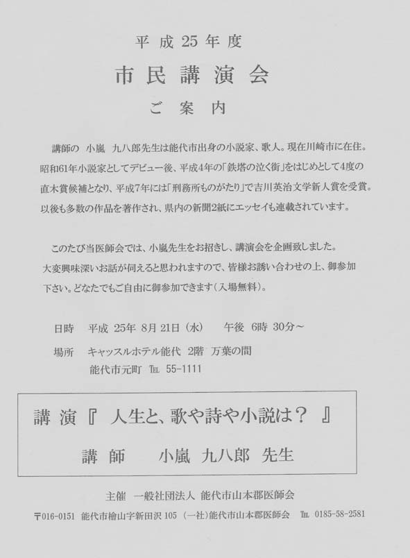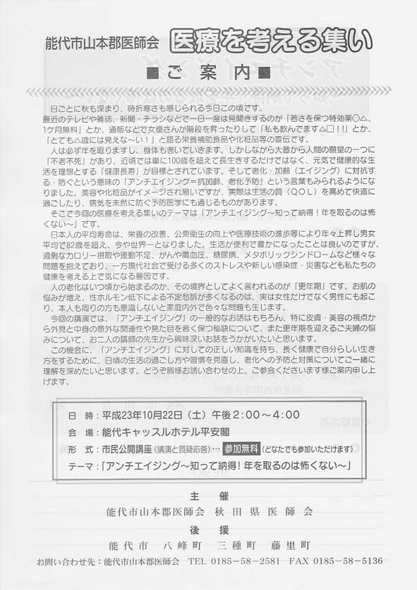 8月23日(土) 午後2時 (キャッスルホテル能代) 参加無料です。
