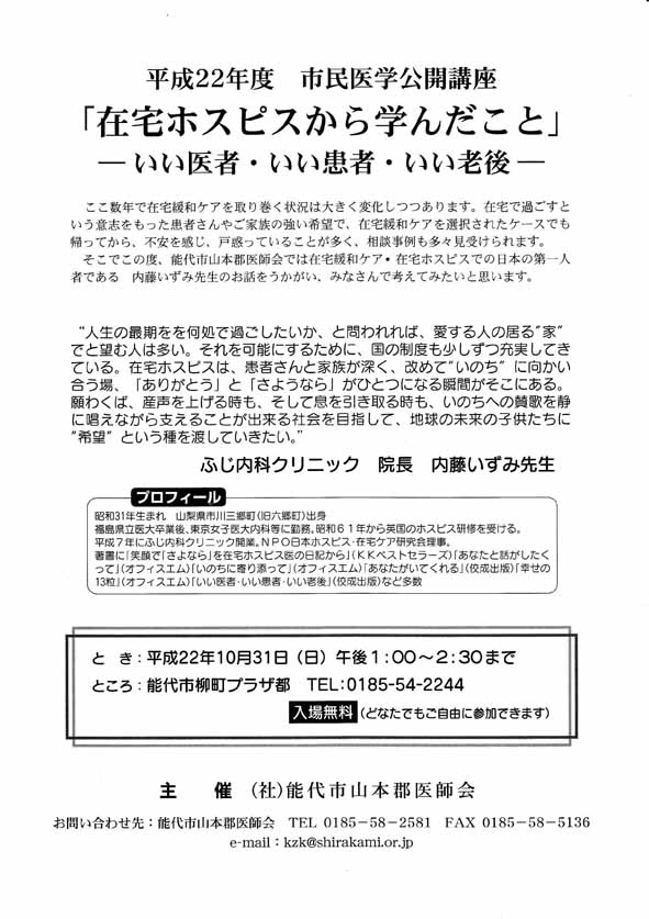 ・平成22年2月6日(土曜日)午後2時~4時(医療を考える集い)