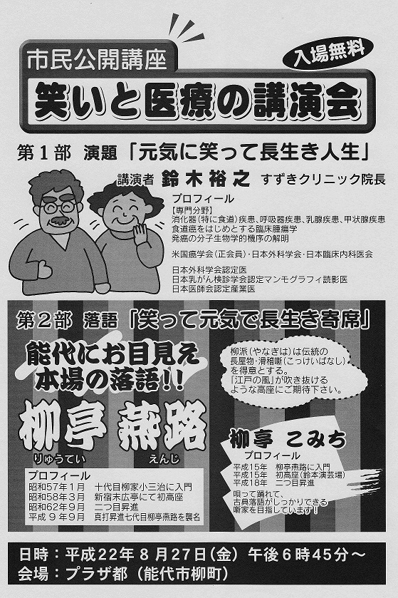 ・お笑い市民講座~「笑いと医療の講演会」(ポスター)